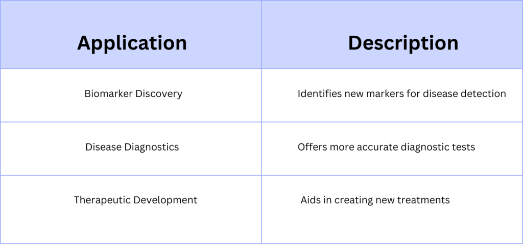- Prediction: Algorithms can predict potential biomarkers for disease diagnostics.